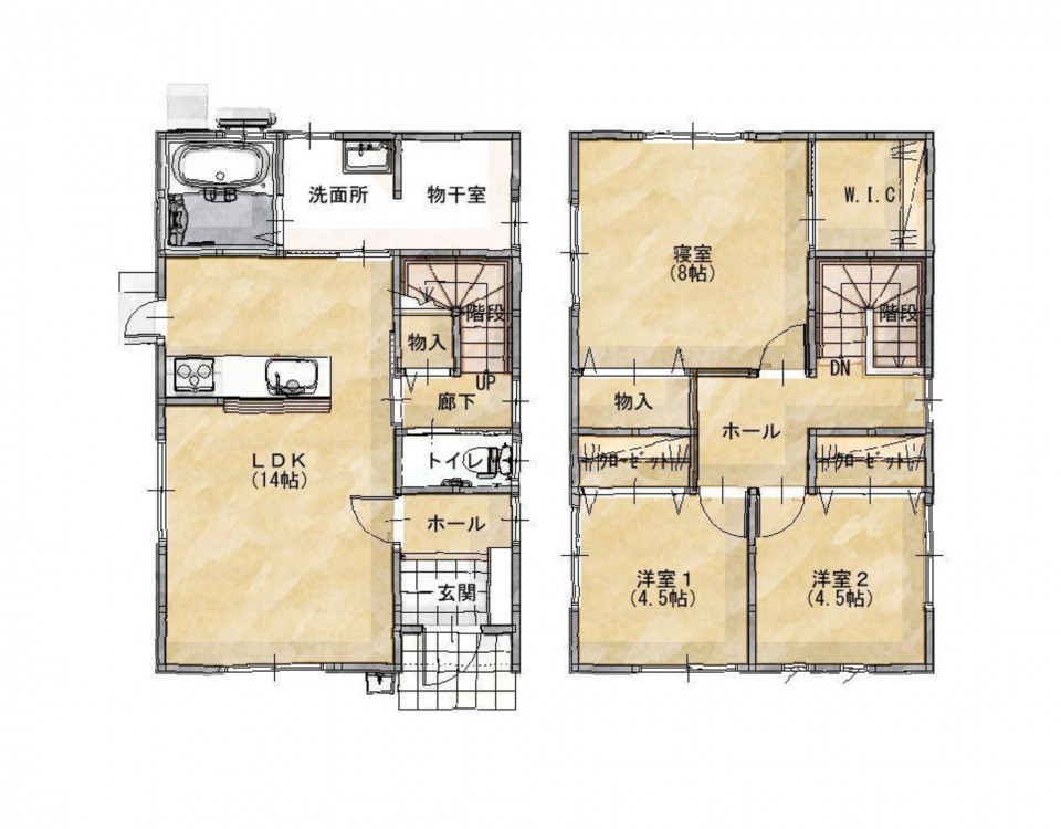 - 側溝、システムキッチン、食器洗浄乾燥機、IHクッキングヒーター、オール電化、洗浄便座、複層ガラス、ウォークインクローゼット、エコキュート、太陽光発電システム