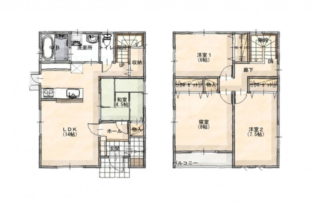 - 側溝、システムキッチン、IHクッキングヒーター、オール電化、洗浄便座、浴室乾燥機、追い焚き、ルーフバルコニー、モニタ付インターホン、駐車場3台分、太陽光設備