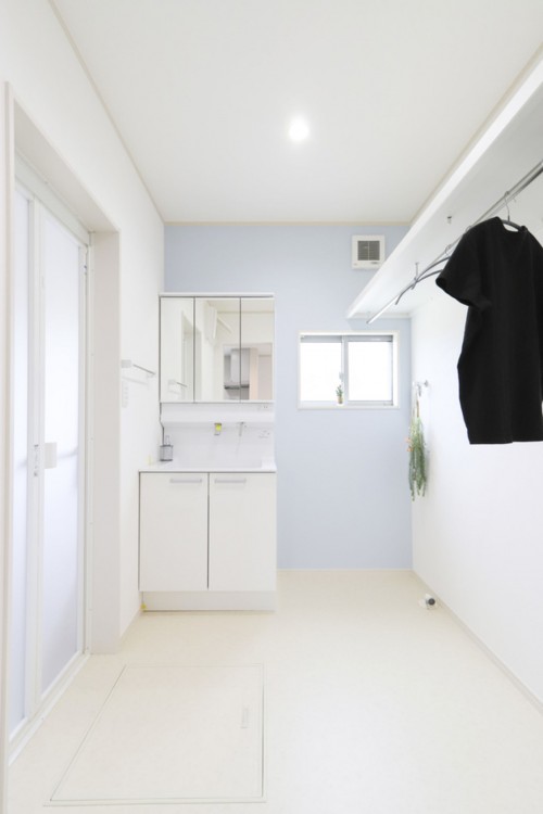 3帖の洗面所には物干し金物がついて洗濯動線がラクラク