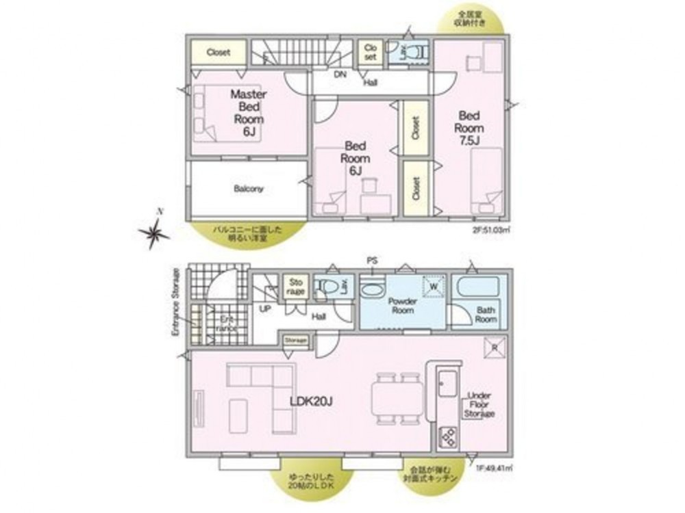 - システムキッチン、IHクッキングヒーター、シャンプードレッサー、洗浄便座、浴室乾燥機、複層ガラス、モニタ付インターホン、駐車場3台分、トイレ2箇所